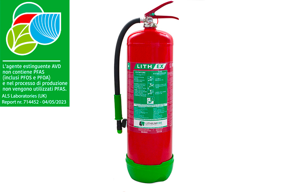 L’estintore da 9L è concepito per batterie da 500 a 750 Wh. E’ progettato per fornire una risposta concreta alla crescente richiesta del mercato di contrastare gli incendi di batterie agli Ioni di Litio, sempre più diffuse in tutto il mondo, sia in ambito civile che industriale.